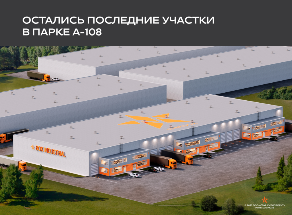 Остались последние участки в парке А-108! Успейте приобрести для своего бизнеса! Спроектируем, построим.
