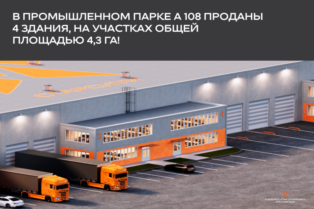 В промышленном парке А 108 проданы 4 здания, на участках общей площадью 4,3 га!