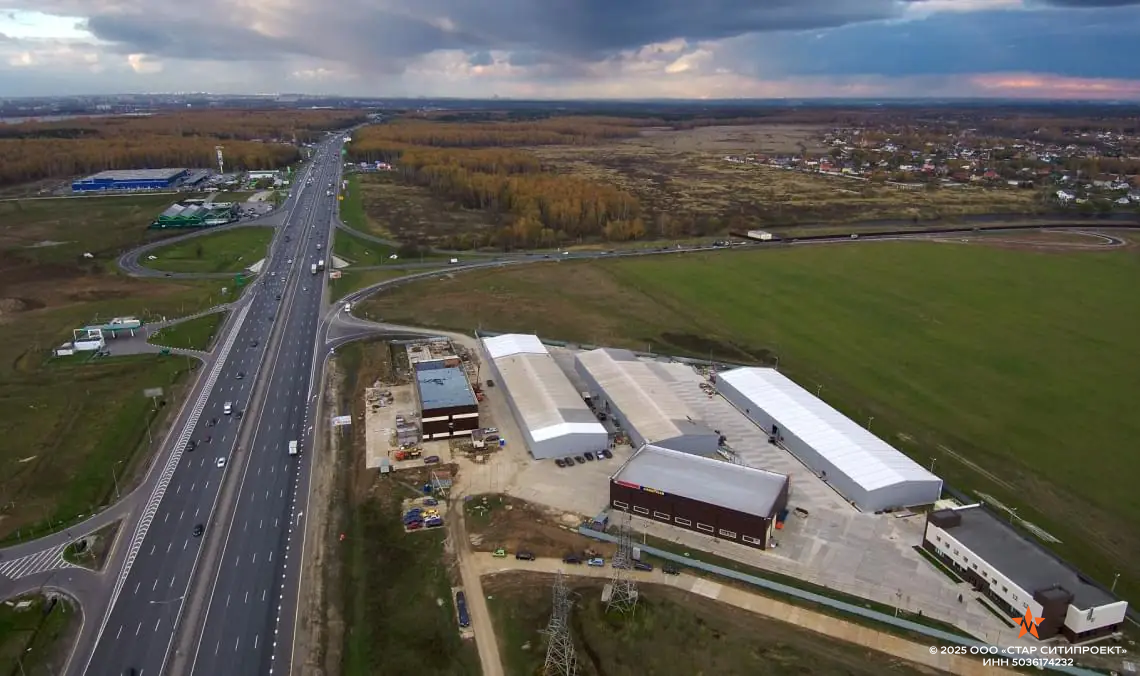 Комплекс включает в себя: три одноэтажных быстровозводимых склада из металлоконструкций и четыре монолитных здания с наружными ограждающими конструкциями из сэндвич-панелей (двухэтажное административное здание, одноэтажный магазин автомобильных шин с шиномонтажными боксами, два двухэтажных многофункциональных здания свободной планировки).
