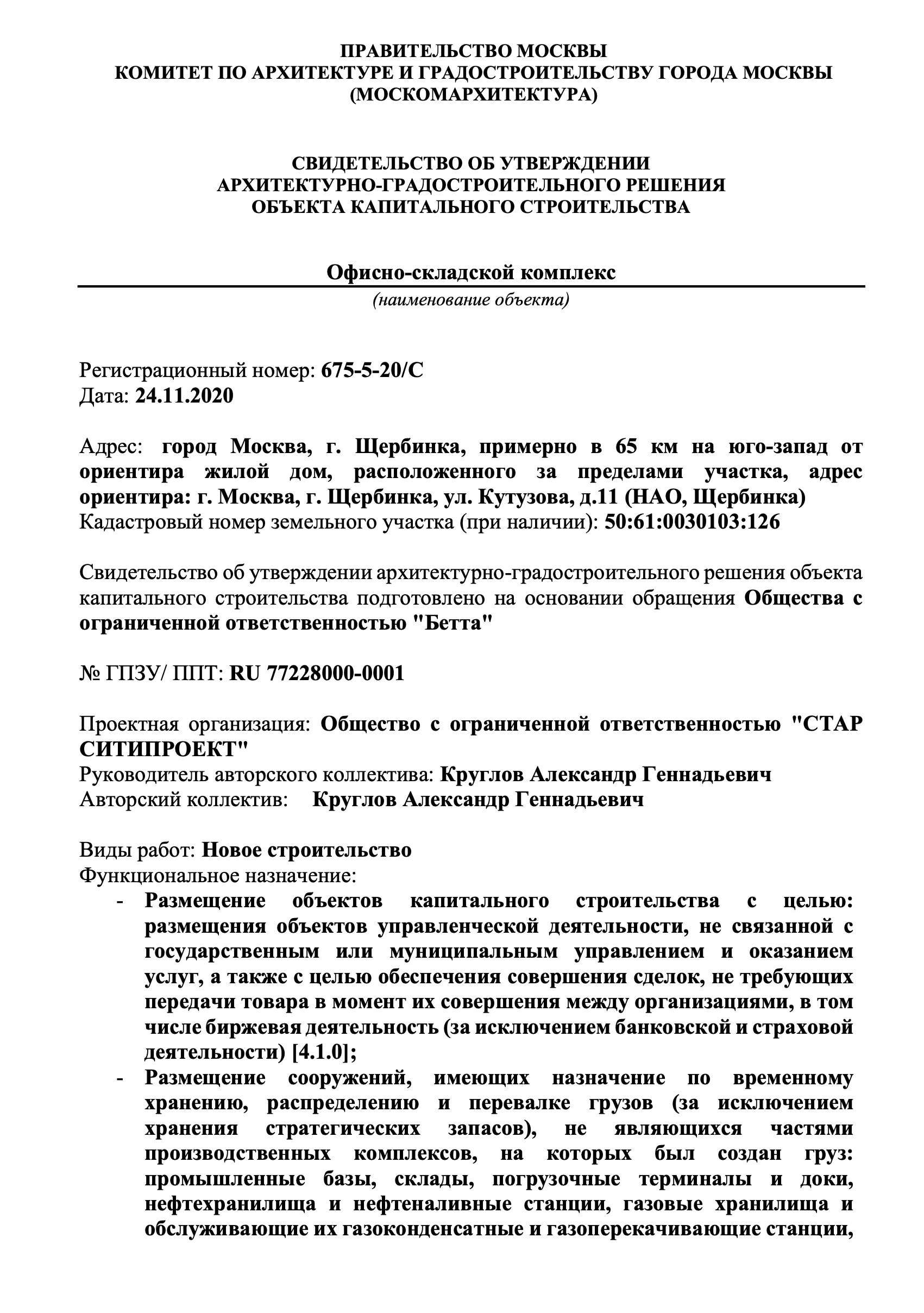 - Получение в Москомархитектуре свидетельства АГР